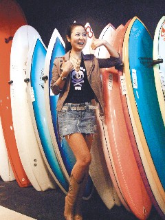 雖然無浪可沖,店里的器材可是從沖浪板到防寒衣一應(yīng)俱全,只不過前來友情贊助、完全不會沖浪的林心如卻抱怨地說:“怎么沒有比基尼可以挑?”