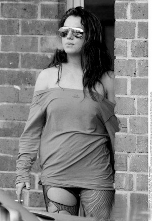 圖文:布蘭妮露肩裝下滑不在乎 身穿破漁網(wǎng)絲襪