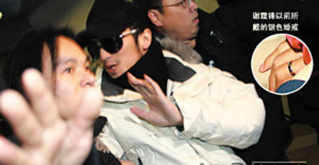 有報道稱謝霆鋒在機場現(xiàn)身時沒有戴婚戒,說明離婚傳聞確有其事,但真實情況可能并非如此。謝霆鋒很早前就說過,因為拍《浣花洗劍錄》時練詠春拳太賣力,左手無名指韌帶、骨頭都斷裂受傷無法伸直,婚戒也戴不上,只好將戒指串成項鏈,戴在脖子上。所以他的婚戒并不是帶在手指上的。