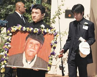 圖文:攜妻兒為父舉行葬禮 成龍捧照送最后一程