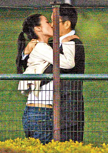 走到人數(shù)稀少的看臺附近時,兩人開始親熱起來。他們先是互相攬腰而行,進而擁抱起來,情到濃時更是當?shù)丶の。許晉亨吻過一輪后意猶未盡,將李嘉欣擁入懷中再度索吻,卻被面帶嬌羞的她輕輕推開。兩人隨后漫步一圈后,驅(qū)車返回女方香閨。