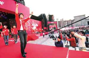 前日傍晚,由香港知名音樂人林夕和雷頌德共同為奧運(yùn)贊助商創(chuàng)作的歌曲《紅遍全球》在奧運(yùn)圣火點(diǎn)燃之際發(fā)布。在韓國(guó)著名組合Super Junior成員韓庚領(lǐng)頭下,18名來(lái)自全國(guó)各地的奧運(yùn)火炬手與前奧運(yùn)冠軍高敏等一起現(xiàn)場(chǎng)演繹了這首歌。作為目前韓國(guó)最當(dāng)紅的組合Super Junior(以下簡(jiǎn)稱SJ)里面唯一一個(gè)中國(guó)成員,韓庚在中國(guó)的人氣銳不可擋,對(duì)于這次有幸擔(dān)任1號(hào)火炬手,他前晚接受本報(bào)獨(dú)家專訪時(shí)表示感到很開心,一定要看奧運(yùn)的開幕式,并且他透露今年會(huì)將大部分時(shí)間放在中國(guó),而且SJ也會(huì)分組一隊(duì)專門針對(duì)中國(guó)市場(chǎng)的組合,并計(jì)劃推出中文專輯。