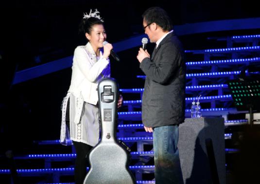 終于,這番朝思暮盼總算在成都演唱會上有了美麗結(jié)局。當奶茶在臺上一眼看到李宗盛優(yōu)雅的拖著吉他箱上臺助陣時,驚喜得說不出話。大哥逗趣笑說:“奶茶之前放過話,說我如果不給她吉他,接著每一場演出我都得來當她的嘉賓。所以呢,我今天可不可以先給妳吉他箱子,等下一場時再給妳吉他,因為我實在太想到妳的場子上唱歌了!”