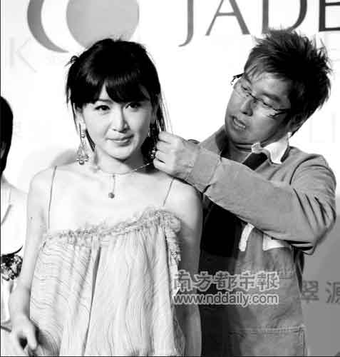 據(jù)了解,這家以翡翠飾品為主營業(yè)務(wù)的店面大約100平方米左右,算是在玉瓏坊比較有規(guī)模的店面,不過開幕的明星陣容則因為老板是譚詠麟則顯得“空前絕后”。譚詠麟在現(xiàn)場親手為每一個捧場的明星嘉賓戴上翡翠玉石。高個美女不得不微微屈膝遷就譚詠麟的高度。譚詠麟還給歌迷的寶寶贈送掛飾,寶寶認生不識天王就在身邊,看見譚詠麟就大哭。當時還現(xiàn)場燃放煙火,由于煙火離嘉賓太近,溫碧霞穿的又是很薄的衣服,為避免意外,鐘鎮(zhèn)濤還手腳并用幫溫碧霞擋火焰。