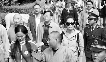 王菲、那英并非專程來蓉。下了飛機之后,她們立刻驅(qū)車前往峨眉山。下午2:30左右,一行人在峨眉山管委會工作人員的陪同下,出現(xiàn)在了萬年寺。到達無梁磚殿時,王菲摘掉墨鏡,虔誠地跪在墊子上,雙手合十,閉上雙眼許愿祈福,時間長達20分鐘。在其他殿,王菲或跪或站,沒有落下一個殿。兩人隨后前往寺里的禪房聽大師講解佛法,一呆就是兩個小時。峨眉山管委會的一位負責人事后透露,王菲早在月初就已準備前往峨眉山,“她在成都的一位朋友一周前就和我們聯(lián)系,希望屆時幫忙維持秩序。幸好昨天我們增派了近20名工作人員,不然游客一亂,還真要擾了寺廟的清靜!睋(jù)悉,王菲在禪房和大師暢談佛法,最后還主動坦白,“早就仰慕萬年寺的大名,所以這次專門前來許愿!敝劣谕醴圃S下了什么心愿,外人并不知曉,但峨眉山管委會替那英澄清了耍大牌的嫌疑,“聽說她好像生病了,所以精神一直不太好!