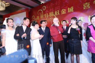 婚禮現(xiàn)場(chǎng)一直以浪漫的音樂(lè)做背景,彩帶飄揚(yáng),鮮花搖曳。新娘新郎們興奮地參加權(quán)金城為他們準(zhǔn)備的各項(xiàng)活動(dòng),他們的臉上始終洋溢著幸福的笑容。宋丹丹說(shuō):“平日在小品里經(jīng)常演農(nóng)民工,看到這些來(lái)自農(nóng)村的新人們覺(jué)得特別親。農(nóng)民工咋了,勞動(dòng)最光榮!我們這次來(lái)就是要喚起全社會(huì)對(duì)農(nóng)民工的關(guān)愛(ài),他們?yōu)槌鞘薪ㄔO(shè)做了很大貢獻(xiàn),社會(huì)應(yīng)該為他們提供力所能及的幫助,解決他們的困難,讓他們生活得更幸福!