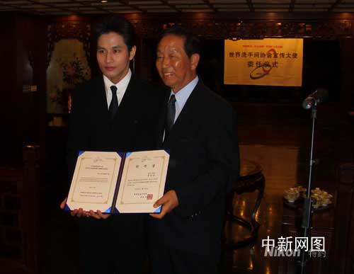 副會(huì)李曉林表示:很榮幸邀請(qǐng)到韓國著名歌星, “全民舞王”—— 劉承俊先生擔(dān)當(dāng)“2008年國際宣傳大使”。在宣讀了“2008國際宣傳大使”職責(zé)和義務(wù)后,邀請(qǐng)劉承俊先生共同簽署委任書。李曉林還說:第二屆世界“洗手間”協(xié)會(huì)總體大會(huì)將于明年在我國召開。計(jì)劃成陸續(xù)向中國農(nóng)村廣大鄉(xiāng)村、城鎮(zhèn)等地區(qū),投入具有世界級(jí)標(biāo)準(zhǔn)的洗手間設(shè)施和文化保潔用品。