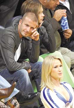 看湖人比賽“偷看”拉拉隊(duì)員 小貝氣壞辣妹(圖)
