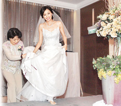 中新網(wǎng)5月29日電 據(jù)香港太陽報報道,陳法拉日前為新劇《溏心風(fēng)暴之家好月圓》拍攝一場結(jié)婚戲,身著純白婚紗的她,身姿優(yōu)美,高貴典雅。