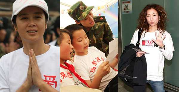 中新網(wǎng)6月2日電 四川大地震發(fā)生二十天來,演藝圈抗震救災(zāi)的熱情空前高漲,越來越多的明星參加各種賑災(zāi)活動(dòng),前往災(zāi)區(qū)送溫暖。明星總是人們?cè)敢怅P(guān)注的焦點(diǎn),這些明星在受到贊賞的同時(shí),也遭到“作秀”的質(zhì)疑。高調(diào)捐款有炒作嫌疑,低調(diào)捐款被誤認(rèn)冷漠,領(lǐng)養(yǎng)孩子被視為炒作,深入災(zāi)區(qū)被當(dāng)作虛偽,明星真的好難當(dāng),下面我們回顧下這些天明星赴災(zāi)區(qū)的事跡。