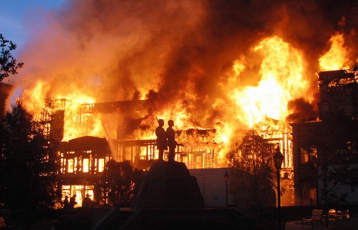 《回到未來》中著名的鐘塔化為灰燼
