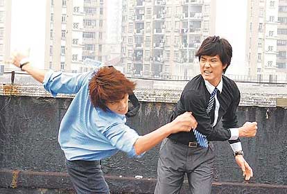 言承旭(左)與陳至愷拍《星心的淚光》打戲,不慎撞傷手臂。