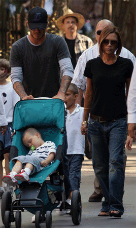 中新網6月13日電 據英國《每日郵報》報道,美國當地時間星期三下午,貝克漢姆和維多利亞帶著三個兒子,大游迪士尼樂園。現(xiàn)場所見,他們的大兒子布魯克林與二兒子羅密歐已漸有明星架勢,小兒子克魯茲則獨享寶寶車,睡得十分香甜。