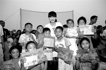 素面朝天的范冰冰在現(xiàn)場一直大聲地講話,賣力地和孩子們交流,但由于現(xiàn)場實在太喧鬧,記者無法聽清范冰冰和孩子們在交流什么,但是人群中不時爆發(fā)出一陣陣的笑聲,現(xiàn)場氣氛十分熱烈,讓大家感受到孩子們積極樂觀的精神面貌。同時記者還了解到,昨晚放映的電影是范冰冰主演的《精舞門》,這部電影從來沒有公開放映過,劇組取消了所有的首映活動,在全片完成的第一時間把膠片帶到災(zāi)區(qū),希望災(zāi)區(qū)的孩子們和其他地方的孩子們一樣,能同步享受到開心和快樂。