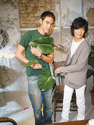 中新網(wǎng)6月19日電 因偶像劇《命中注定我愛你》暴紅的臺灣男演員阮經(jīng)天,為回報(bào)蕭敬騰曾在該劇中客串演出,前天特意留出6小時(shí)空檔,幫蕭敬騰拍新歌《奮不顧身》MV,蕭敬騰知道他將履行收視率破10要裸泳的承諾,特地探班并送2片植物,還揶揄他:“看你要遮臉還是遮下面!”阮經(jīng)天則笑答:“那要再送我1片!”