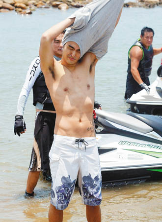 據(jù)臺(tái)灣“聯(lián)合報(bào)”報(bào)道,臺(tái)視、三立“命中注定我愛你”男主角阮經(jīng)天提前一天裸泳,電視臺(tái)事前將地點(diǎn)列為最高機(jī)密,避免閑雜人等混入。昨天大批媒體被游覽車載到三芝淺水灣,阮經(jīng)天瞄到攝影記者手中的大炮(演唱會(huì)最常使用的長鏡頭),嚇得倒退:“那是火箭筒嗎?”也有女記者對(duì)著他尖叫:“我要驗(yàn)收!”想檢查海灘褲里是不是啥都沒穿。