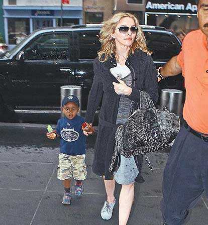 麥當(dāng)娜昨日未戴婚戒與養(yǎng)子上街。