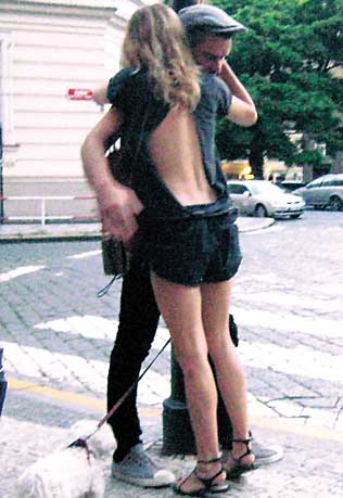 上周末,蓋提飛往布拉格,與在那里的西耶娜會合。兩人在街頭牽手遛狗,西耶娜身著一件背部全裸的輕薄衣衫,甚為風騷。西耶娜緊緊摟著已婚富豪,親吻其面頰。而男方也是不時輕撫西耶娜面龐,滿臉柔情。