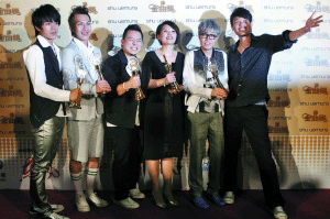坐在金曲獎臺下悶了一晚的“蘇打綠”,在倒數(shù)第4個獎項(xiàng)終于拿獎,順利連莊“最佳樂團(tuán)獎”。盡管去年已享受過這份殊榮,但大伙還是齊呼:“感謝每個肯定我們的人,再拿還是開心!”今年參加金曲,“蘇打綠”帶著精心打扮過的媽媽們“蘇打娘”走星光,粉嫩又亮眼的星媽們果真也替他們帶來好運(yùn)氣。