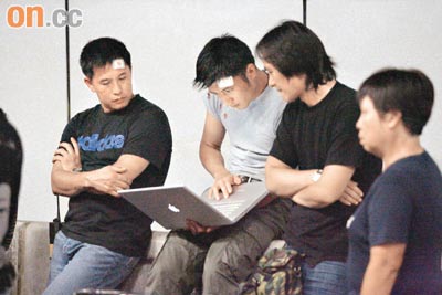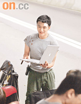 心情大靚的霆鋒,與工作人員及記者分享計(jì)算機(jī)中的私人相簿。
