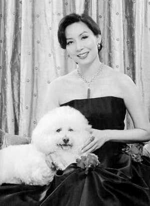 記者眼前的鄺美云,住在深水灣的獨(dú)立別墅,門(mén)口站著身高1.83米、曾保護(hù)美國(guó)前總統(tǒng)克林頓的貼身保鏢;走進(jìn)100平方米的豪華客廳,一位菲傭忙著端上從美國(guó)空運(yùn)訂購(gòu)的杞子汁給記者,另一位菲傭正在為鄺美云的愛(ài)犬Cash準(zhǔn)備香噴噴的法國(guó)鵝肝。此刻,配戴超過(guò)千萬(wàn)元鉆飾的鄺美云正坐在二樓飯廳里,她在金光閃閃的水晶吊燈下給愛(ài)犬戴上“領(lǐng)呔”。