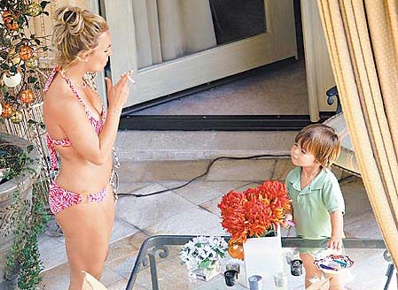 中新網(wǎng)7月22日電 “小甜甜”布蘭妮(Britney Spears)行使探視權和兒子見面,卻被拍到穿著比基尼在將滿3歲的大兒子西恩(Sean Preston)面前吞云吐霧,難怪在爭奪兩個兒子監(jiān)護權的官司中輸給前夫凱文費德林(Kevin Federline)。