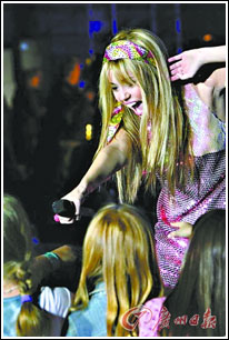 麥莉·賽勒斯主演的電視劇《孟漢娜》從2006年3月24日播放以來,收視率一度超過《越獄》。2006年10月,迪斯尼順勢(shì)推出《孟漢娜》劇集的同名原聲大碟。發(fā)行第一周就以28萬張的數(shù)字成為銷量榜冠軍,成為全美專輯榜史上首張排行第一的電視劇原聲大碟。2007年,麥莉·賽勒斯在全球54個(gè)城市舉辦巡回演唱會(huì),“黃牛票”動(dòng)輒被炒到上千美元一張。迪斯尼在2008年推出記錄麥莉·賽勒斯巡回演唱會(huì)生涯的影片《麥莉演唱會(huì)實(shí)錄》,一舉成為今年2月初的北美票房冠軍。另外,該片僅僅在683家影院上映,以平均每家影院4.2萬美元的佳績(jī),超越《蜘蛛俠3》《加勒比海盜3》,打破了北美單家影院收入紀(jì)錄。2008年3月,在美國(guó)第21屆兒童選擇獎(jiǎng)上,麥莉·賽勒斯獨(dú)攬最受歡迎女歌手和電視女演員(《孟漢娜》)兩項(xiàng)大獎(jiǎng)。麥莉·賽勒斯的出場(chǎng)還贏得頒獎(jiǎng)禮現(xiàn)場(chǎng)近萬名青少年的歡呼。