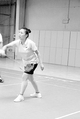 “來何冰,咱幾個(gè)一起打一場!鼻驁錾系奶镎鸩粌H技術(shù)好,而且十分活躍,和龔睿那組成一組,與何冰、隊(duì)長強(qiáng)一進(jìn)行雙打。