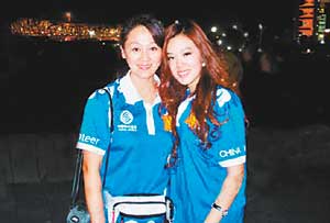16日晚,夜幕下的鳥巢格外璀璨,而就在鳥巢南面的廣場(chǎng)上,同樣星光熠熠。在這里,搜狐娛樂的記者意外遇到了演員王姬,而此刻她的身份,是服務(wù)奧運(yùn)的城市志愿者,而她的身旁陪著個(gè)漂亮的姑娘。上前打招呼,果然,她就是王姬一直在美國(guó)讀書的大女兒——高曉天Angela。