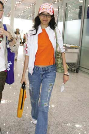 當(dāng)天出現(xiàn)在機(jī)場(chǎng)的莫文蔚打扮得也算低調(diào),但其實(shí)是很講究的:橙色T恤搭配白色運(yùn)動(dòng)外套,再加上橙色的電腦包、橙色的貨車帽、磨舊的牛仔褲,以及她一臉燦爛如陽(yáng)光的笑容,既親和又輕便,是各路粉絲出游、訪友以及外出運(yùn)動(dòng)的首選造型。