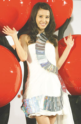 配合代言活動(dòng),她昨天穿的一件禮服,被歌迷以超商儲(chǔ)值卡10500點(diǎn)標(biāo)走。事實(shí)上,她的歌曲“舞娘”、“Love Love Love”因在奧運(yùn)會(huì)場(chǎng)上放送,意外被歐洲注意到,因而進(jìn)入排行榜,她先前又進(jìn)入英國(guó)某雜志AskMen網(wǎng)站Top99位女星排行榜,影響力被形容為“喊水會(huì)結(jié)凍”,而宣稱中文不好的她,果然聽不懂。