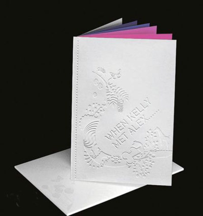 據(jù)香港《明報(bào)》報(bào)道,陳慧琳的喜帖是一本小書的形狀,白色的壓花封面,印上“WHEN KELLY MET ALEX”字樣。內(nèi)里以粉紅色與紫色印了兩首Kelly的愛歌,分別是《Love Paradise》與《Lover's Conceto》;Kelly與Alex的愛意在歌詞中盡表達(dá),完全甜到膩。