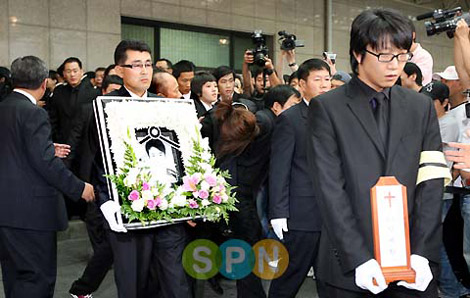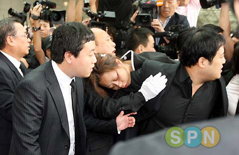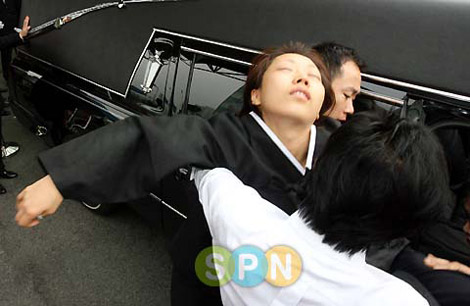 韓國Edaily SPN報(bào)道,在11日舉行的出殯儀式上,安在煥的妻子鄭善姬再次暈倒,令現(xiàn)場人員難過萬分。