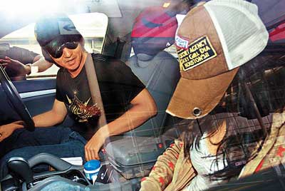 由于徐若瑄趕上機(jī),馮德倫也大力踩油直駛機(jī)場(chǎng),至機(jī)場(chǎng)的客區(qū)時(shí),女助手先下車前往柜位辦理手續(xù),此時(shí)記者趨前拍照,徐若瑄嚇得馬上低頭以帽遮面及狂打電話,同樣戴cap帽、戴墨鏡的馮德倫表情尷尬,勉強(qiáng)擠出一絲笑容,他見(jiàn)徐若瑄身子不停下滑,穿的小背心領(lǐng)口松開(kāi),惟恐她走光即示意整理衣服,她即馬上拉緊外套。