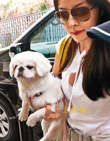 熊黛林抱著小狗離開(kāi)城城住宅,看來(lái)有點(diǎn)匆忙,胸前的衫鈕還沒(méi)扣好。