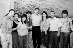 馬蒂努與眾人合影。左一為李莉,右一為李洋。 黃頻/攝