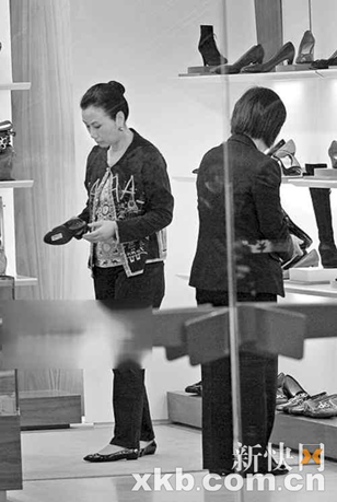 怒氣未消,最適合去“血拼”發(fā)泄。當(dāng)日阿姐一身貴婦Look現(xiàn)身銅鑼灣,先到連卡佛看衫,再步入Fer-ragamo買鞋,只見阿姐揚(yáng)揚(yáng)手,一名男店員即刻擋住門口,不準(zhǔn)閑雜人等進(jìn)入,以免騷擾阿姐。不僅派頭勁,連店員服務(wù)亦屬一流,無(wú)論阿姐走到哪里,都有兩人貼身侍奉左右,過(guò)氣“視后”余威猶在。