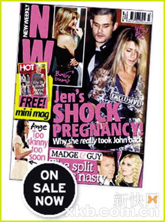 最新出版的澳大利亞媒體《NewWeekly》爆料:詹妮弗·安妮斯頓之所以吃回頭草,同前男友約翰·梅耶再續(xù)前緣,是因?yàn)樗呀?jīng)懷了對(duì)方的孩子!該期雜志的封面是上周四兩人一起離開(kāi)日落塔酒吧時(shí)被拍到的照片。