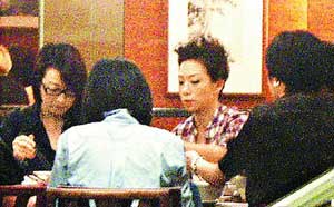 林憶蓮(右二)與工作人員用餐,表情嚴肅。