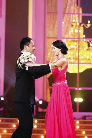 在馬來西亞已經(jīng)高調(diào)舉辦過婚禮,后來又在北京補了答謝酒會,這次在《舞林大會》的現(xiàn)場,胡靜夫婦又按照中國習俗鬧了一次“洞房”。在主持人曹可凡的一再要求下,胡靜和老公朱兆祥不僅現(xiàn)場表演了一段交誼舞,還玩起了“咬蘋果”的洞房游戲,和老公默契的配合也是引來掌聲不斷。