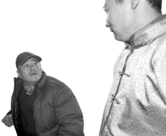 上午9時(shí),記者來(lái)到關(guān)東影視城里的貝勒府,當(dāng)天拍攝是全劇第29集的戲份,大致情節(jié)是,出走的四姨太回到貝勒府,哭著給貝勒爺送信,稱日本人已找到了藏寶地……戲開(kāi)拍前,本山有意留給弟子們發(fā)揮空間,他坐在監(jiān)視器前,熟練地帶上耳麥,“預(yù)備!開(kāi)始!”本山的話音剛落,吳一迪的眼淚噴薄而出,演員們正演得起勁,本山突然問(wèn)道:“什么聲音?”原來(lái)由于風(fēng)大,木門發(fā)出“當(dāng)當(dāng)”聲,見(jiàn)狀,本山對(duì)劉流說(shuō):“哈貝勒挺招風(fēng)啊!闭Z(yǔ)畢,現(xiàn)場(chǎng)笑成一團(tuán)。