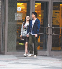 日前某天中午,記者在北京朝陽公園附近陳曉東的公寓外,看見陳曉東和一位年輕的女孩手牽手地走出了公寓大門,曉東一手拿著一桶薯片,一手拿著一個蘋果,正津津有味地吃著,出門時他還把蘋果喂給那個女孩吃。陪著他一起出門的女孩,看上去也就20歲出頭,他們上了一輛出租車,只見兩人興奮地聊個不停。陳曉東漸漸地靠在了女孩的身上,并且還親吻了女孩幾下。陳曉東和女孩先是來到了世貿(mào)天階逛商場,兩人緊緊牽著手一邊逛著,一邊旁若無人地說笑。