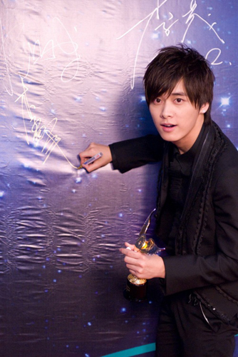 被譽為“國民校草”的李易峰,以超高人氣初涉歌壇,國內(nèi)首張概念EP《摩天輪》交出了首份亮眼的音樂成績單,在2008年底的首個樂壇頒獎典禮上便與臺灣人氣實力小天王蕭敬騰一并,將“最佳新人獎”收入囊中。當被問拿最佳新人獎心情怎樣時,陽光帥氣的大男孩心情大好的搞怪回答:上次這么緊張還是拿三好學生的時候。在拍照時,李易峰不斷擺出吐舌、嘟嘴的可愛表情,惹得現(xiàn)場快門聲不斷。