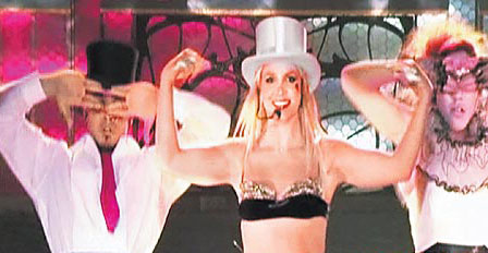 中新網(wǎng)12月18日電 “小甜甜”布蘭妮(Britney Spears)遠赴日本宣傳新專輯《馬戲團》(Circus)。她連2天接通告,繼上松元人志主持的音樂節(jié)目《HEY! HEY! HEY! 》后,她前天又上日本電視臺的節(jié)目《Best Music Artist》。她深知2節(jié)目對打,還特地換打歌服,演唱單曲《花花公子》(Womanizer)時,改穿黑色鑲金閃亮奶罩與熱褲,帽子也換成白色。