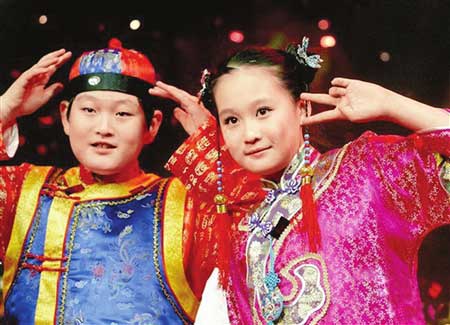 由沈陽籍歌手火風(fēng)、汪正正領(lǐng)銜演唱的開場歌舞《大拜年》,以火爆熱鬧掀開了遼視春晚的蓋頭,節(jié)目中一對童聲演唱的表演者正是趙本山的一對龍鳳胎寶貝牛牛和妞妞。屬牛的牛牛和妞妞今年恰逢第一個本命年,這次表演對他們來說也是兄妹倆首次聯(lián)手的舞臺處女秀,因此兩個小家伙煞是認(rèn)真,無論是彩排還是正式表演,舉手投足都像模像樣,看起來是深得父親的真?zhèn)鳌?