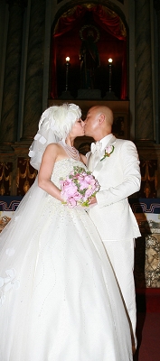 昨天,愛情長跑10年的張衛(wèi)健與張茜在始建于1571年的菲律賓著名景點(diǎn)圣奧古斯丁大教堂舉行了婚禮。香港驕陽電影公司總裁徐小明為兩人證婚,而作為兩人共同好友的李靜和戴軍則出任大婚司儀。在婚禮上張茜身穿一件拖尾純白裹胸婚紗,上半身有5000顆水晶點(diǎn)綴,造型別具一格。在婚禮中,一對(duì)新人在親友面前熱吻一分鐘,張茜還兩度喜極而泣。