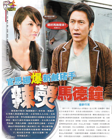 官恩娜禍從口出,因為一席話而將馬德鐘、吳卓羲等男藝人拖入“咸豬手事件”,惹來當(dāng)事人和無線高層的不滿(見昨日B1版)。為此,她只好主動致電TVB高層樂易玲作解釋,并公開向無辜的男藝人道歉。