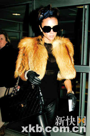 日前,維多利亞出現(xiàn)在紐約國際機(jī)場,包腿皮褲、性感蕾絲上衣外加皮草外套,整體造型非常搶眼,但唯一令人不解的是她頭上的藍(lán)色大花發(fā)夾,相當(dāng)雷人。