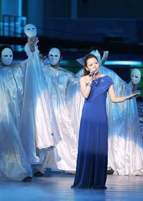 中新網(wǎng)2月20日電 昨晚,在國家游泳中心水立方舉行了一場由某網(wǎng)絡(luò)搜索引擎舉辦的頒獎典禮。華誼音樂旗下藝人張靚穎出席了此次頒獎典禮,同時以絕對優(yōu)勢成為當(dāng)晚音樂類獎項的大贏家,為自己在2008年的努力交上了一份滿意答卷。當(dāng)晚,張靚穎在數(shù)十名頭戴面具的舞者簇?fù)硐卵莩艘磺懂嬓摹,以一襲藍(lán)色露肩禮裙登場的她,顯得氣質(zhì)清麗高雅。而宛如天籟的清亮嗓音,讓到場嘉賓為歌動容。