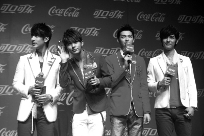 作為目前最受歡迎的青春偶像組合,“飛輪!4位帥哥成員吳尊、炎亞綸、汪東城和辰亦儒齊集上海,推出今年可口可樂(lè)全新廣告。由于早有“飛輪!背蓡T不和的傳聞,吳尊和“大哥”汪東城在發(fā)布會(huì)上更是“明爭(zhēng)暗斗”,但記者一提到前輩F4,四人均立刻不屑道,“他們只是機(jī)遇比較好”。